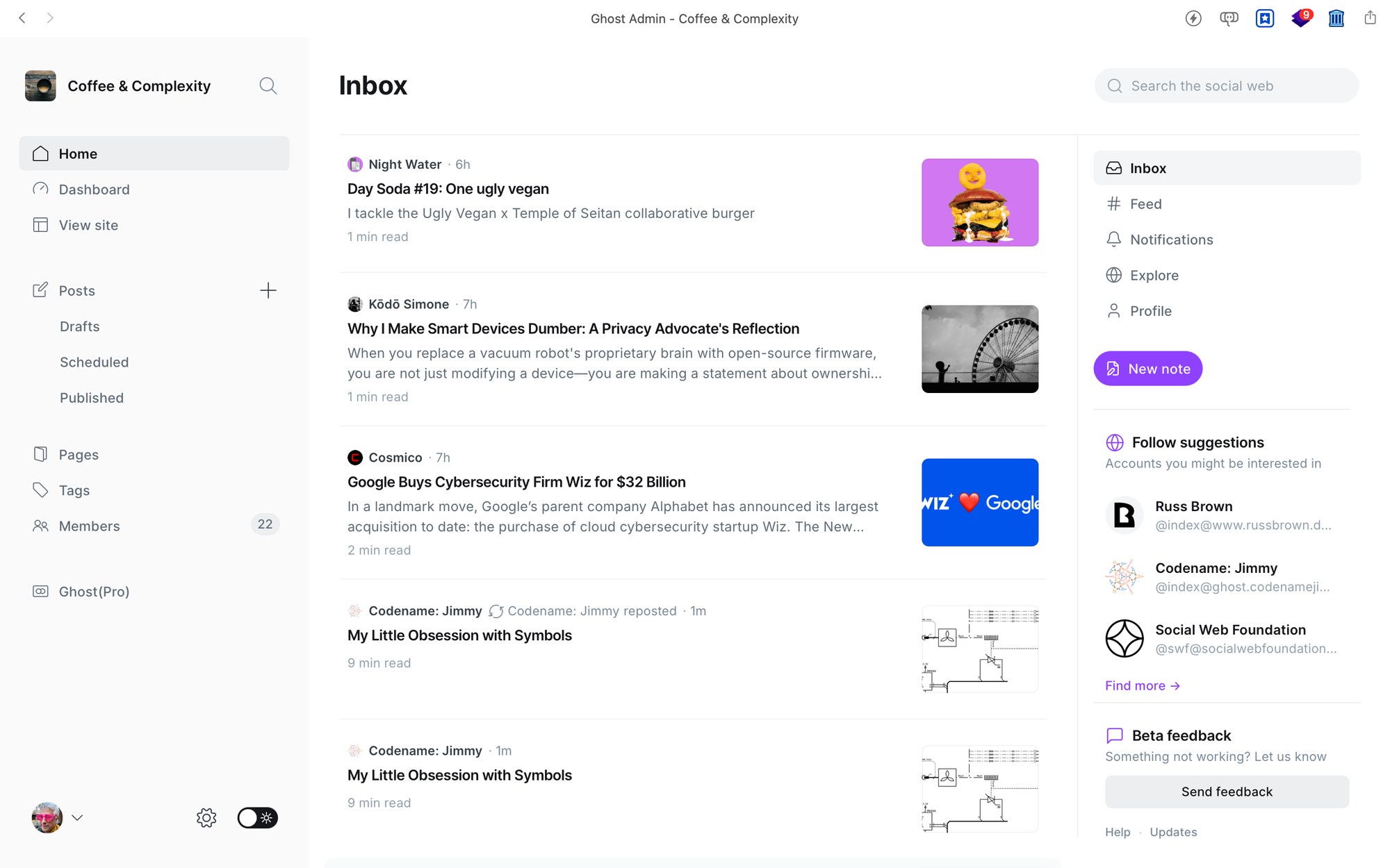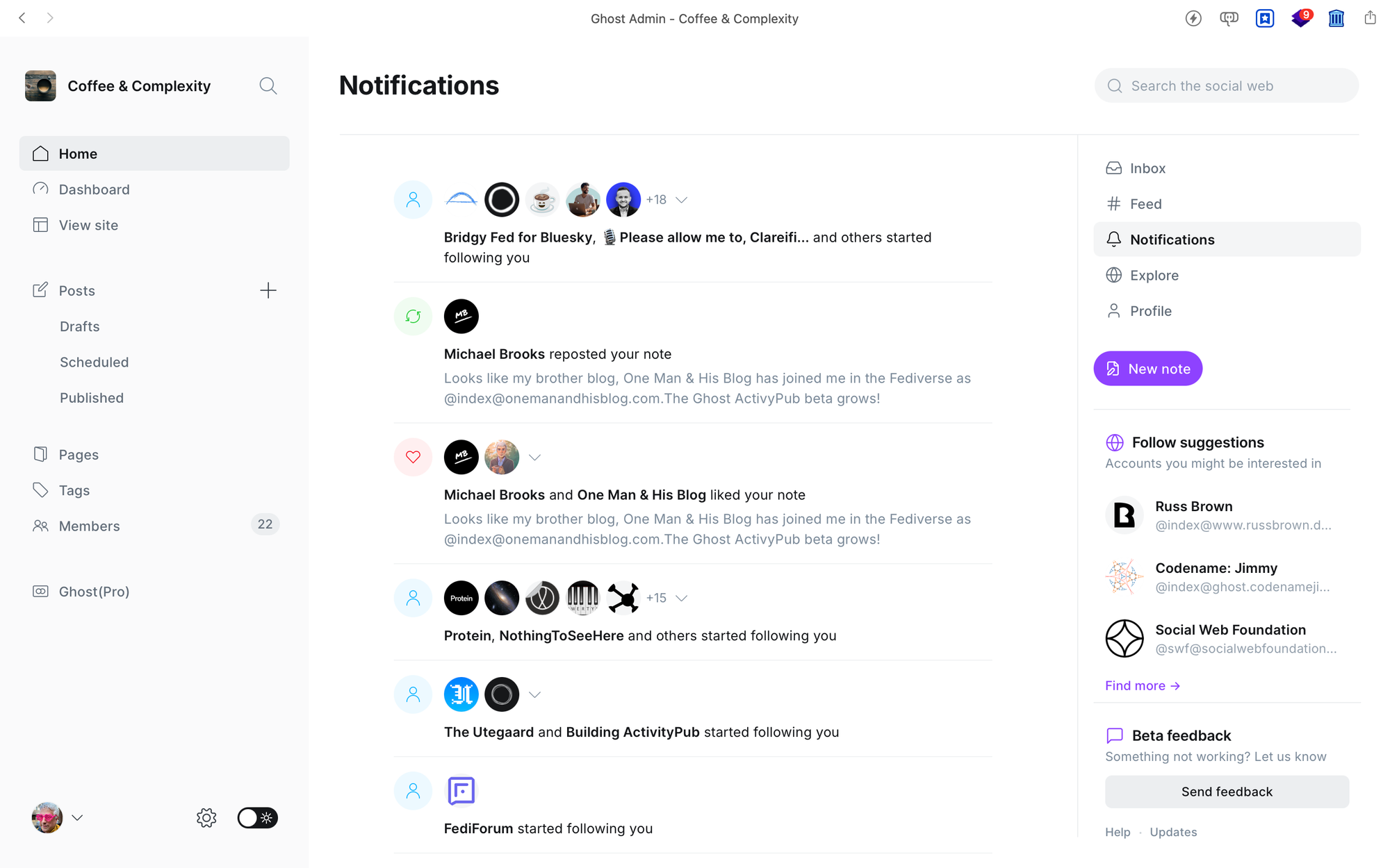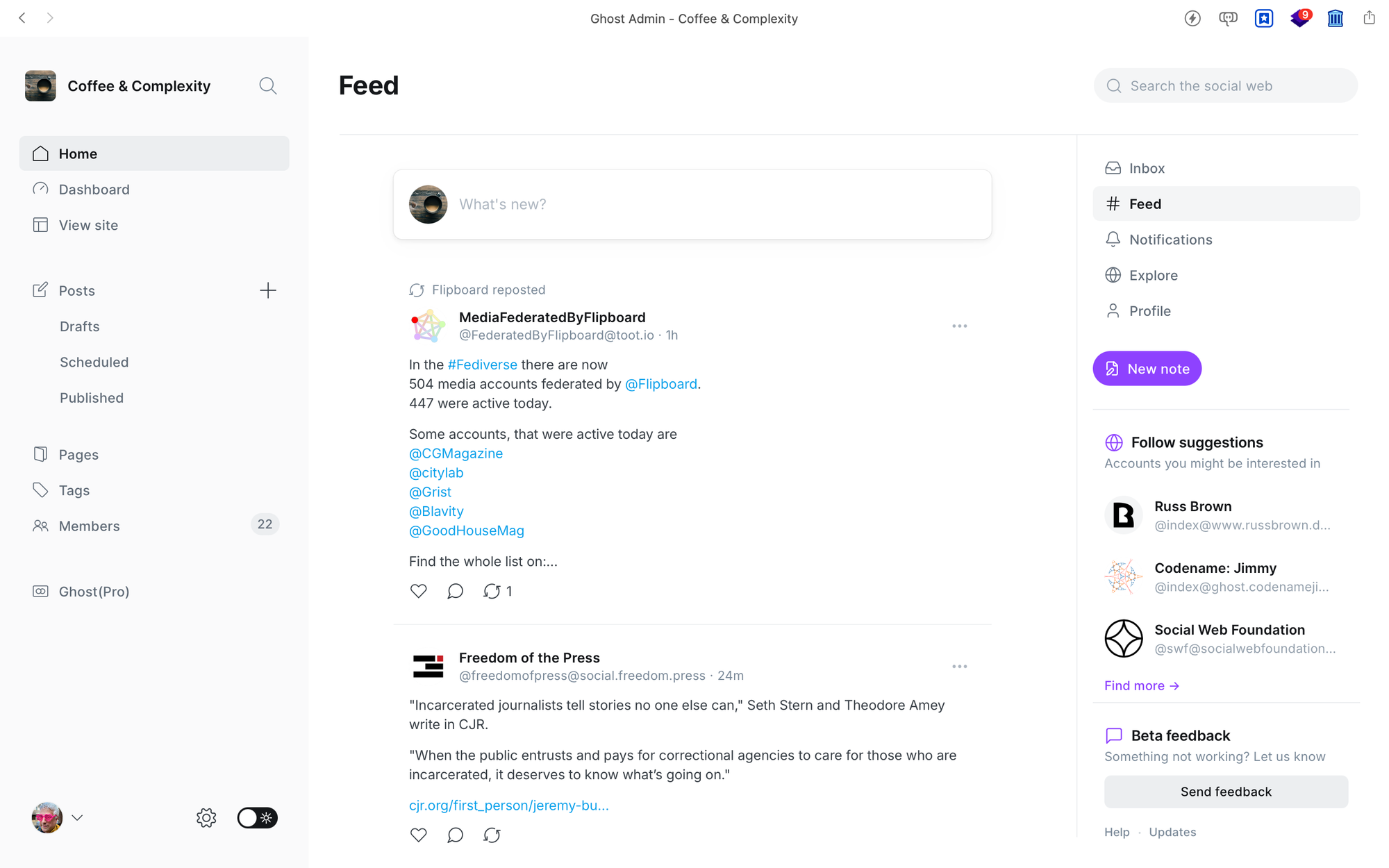 The reason I’m digging up this ancient history is that, right now, in the back end of this very blog, I can both write posts, and read content from others. And I can even create short, Twitter-like posts that will be pushed to Mastodon – and other places, too. An old idea, the one that was at the heart of Livejournal 25 years ago, has been reborn in a new form: Ghost has released the public Beta of its ActivityPub implementation.